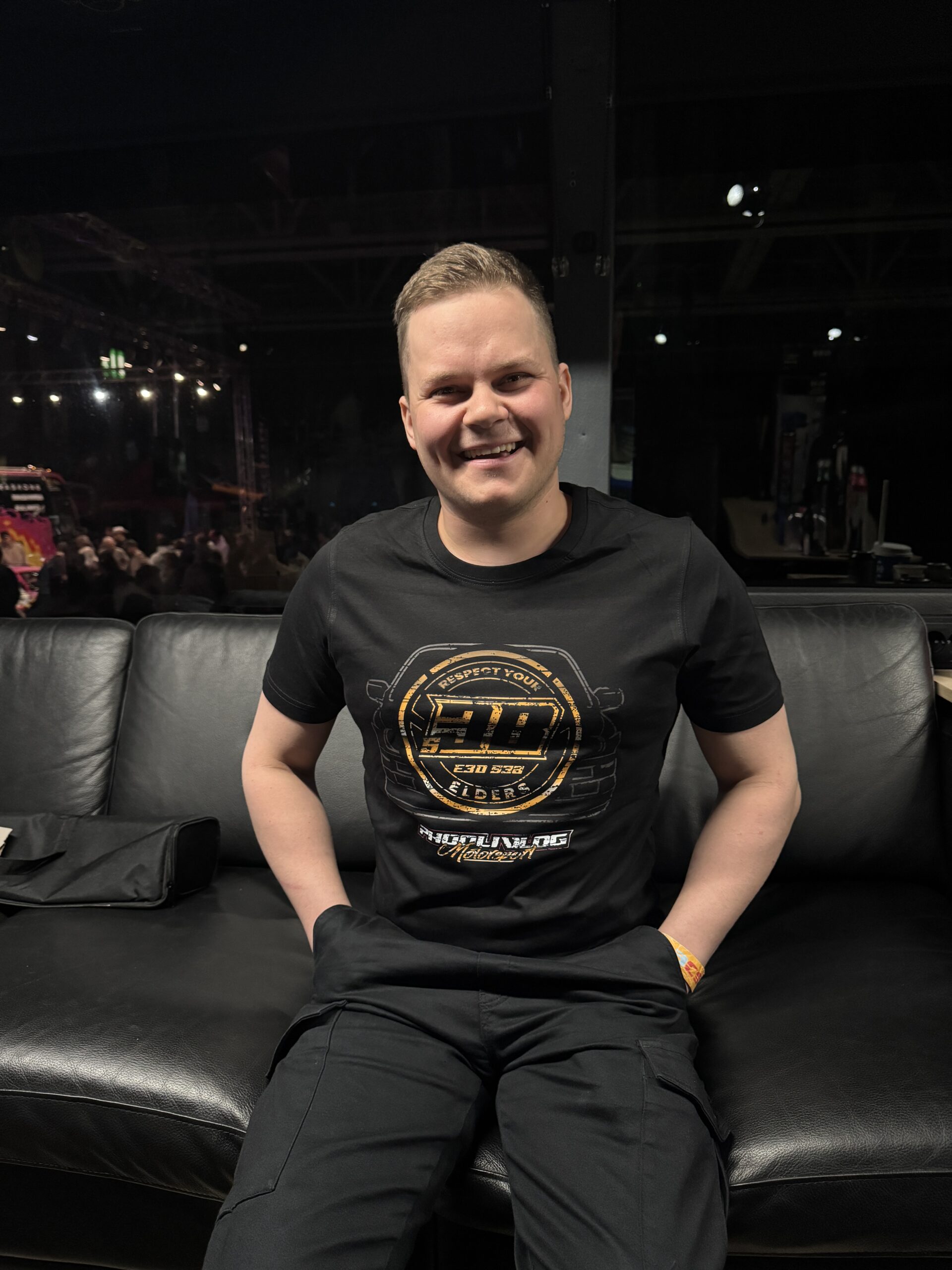 Musta T-Paita komialla logolla. Hyvin istuva laadukas paita. 100% Puuvillaa.